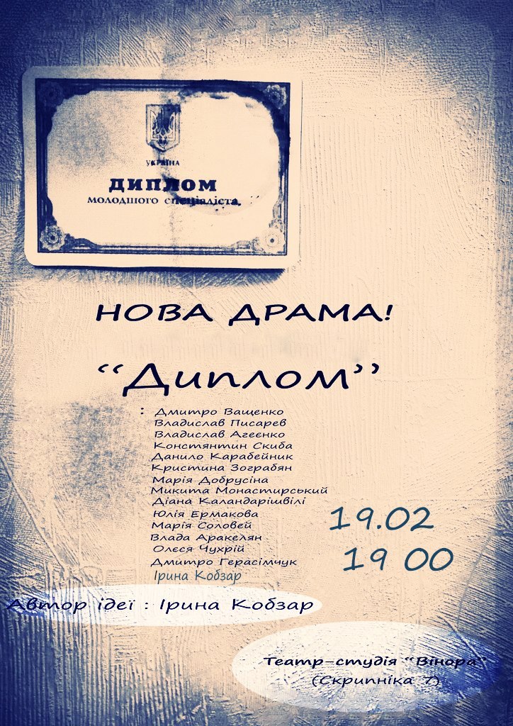 Молодежный театр «Вінора», в последствии названный «Vinora-playing-town», был основан при Центре Культуры Киевского района, г. Харьков. До 1991 года театр работал под названием «Народный театр» Зары Довжанской. Семь лет спустя, в 1998 году, театр восстановила актриса театра им. Шевченко Ирина Кобзарь. Она дала театру второе имя – «Вінора» (или «Vinora-playing-town»). Среди актеров театра есть как профессионалы, так и студенты Харьковскоготеатрального университета и аматоры. За 14 лет работы на сцене театра было поставлено около 200 спектаклей по произведениям Лины Костенко, Сергея Жадана, Тараса Шевченко, Василия Стуса, Николая Коляды, Тараса Акалепова и других авторов. На данный момент репертуар театра состоит из следующих спектаклей: сюр-перформанс «Золотая рыбка» по одноименному произведению А.С.Пушкина, авторский проект Т.Аскалепова «Человек-ракета», поэтическая вакханалия по произведениям В. Маяковского «ЛЮ-БЛЮ.», совместный проект с Гете-Институтом «Новая немецкая драматургия» спектакль «Зірки» по пьесе Ани Хиллинг. К выпуску готовится: спектакль по мотивам одноименного романа Брэма Стокера «Дракула»